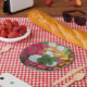 Auf dieser Papiertafel finden Sie eine Ernte von Tomaten/Paradeisern und Gurken. Ideal für Party und Picknicks. Wählen Sie Ihre Grossplatte aus.
