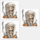 Tombside Trouble - Mummy Mischief & Mini Monsters Label Eine mit Augen Mumie mit einem Skelettgesicht sitzt in einem Steingrab, eine Hand zeigt in spielerischer Distanz. Die Szene wird von zwei geschnitzten Jack-o’-Laternen und kleinen Skelettliedern gesäumt und von Grabsteinen und verstreuten Herbstblättern gerahmt. Das Design verbindet spöttischen Charme mit cartoonischem Unfug, indem es Halloween-Geist durch kühlen Charakter, unheimliche Details und ein Augenzwinkern des Unerwarteten einfängt.