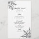 Le menu festif Silver Tone Snowflake Winter Wedding Menu peut être personnalisé avec les détails du repas que vous allez servir à votre déjeuner de douche nuptiale de décembre, janvier ou février, dîner de réception mariage ou brunch post mariage en ajoutant la salade ou le premier plat, entrée ou deuxième plat et dessert ou troisième plat. Cet élégant menu mariage d'hiver personnalisé présente des flocons de neige argentés complexes qui ornent les coins d'un arrière - plan blanc.