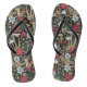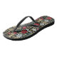 Ces tongs présentent des champignons et des fleurs rouges, vertes et bronzés sur un arrière - plan noir.