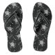 Ces tongs ont un motif amusant et abstrait de fleurs d'art blanc sur un arrière - plan noir et feront un grand cadeau pour l'été.