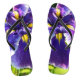 De magnifiques fleurs d'iris violet avec des notes d'or font des flipflops d'été saisissants.