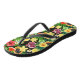 Tongs Mix-fruits tropicaux, fleurs et feuilles en noir