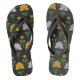 Un motif saisissant avec des fleurs jaunes et violettes aux tiges vertes et des feuilles sur un arrière - plan noir.