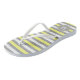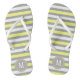 Ces mignonnes tongs personnalisées ont comme arrière - plan un joli motif rayé jaune, gris et blanc. À chaque talon se trouve une bannière de cercle gris assortie qui est bordée de points jaunes et d'un mince cercle de ligne blanche. Au centre de chaque bannière se trouve votre monogramme en blanc. Amusant, tendance et personnalisé, rien que pour vous !