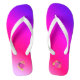 Un design amusant avec un arrière - plan lumineux en rose et violet. Les petits coccinelles roses qui rampent sur les feuille accentuent ces tongs amusants.