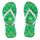 Tongs dans un vintage William Morris motif de jacinthes, tulipes et feuilles, dans les tons vert émeraude et jade, accentué d'aqua et blanc, sur un profond arrière - plan vert de forêt