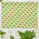 Kleiner Blumendruck in Rot, auf knusprig hellgrünes Handtuch für Küche oder Bad.