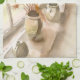 Tonwaren im Fenster-Aquarell auf Geschirrtuch
