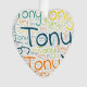 Tony. Montrez et portez ce populaire beau prénom masculin conçu comme un nuage de mots coloré fait de lettrage à la main horizontale et verticale dans différentes tailles et des couleurs fraîches adorables. Portez votre nom américain positif ou montrez au monde que vous aimez ou adorez. Merch avec cette oeuvre d'art en texte souple est un grand cadeau personnel, pas seulement pour les occasions spéciales, ou cadeau d'anniversaire.