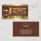 Eine exquisite braune Holzverkleidung wird durch goldene Streifen an den oberen und unteren Rändern der Karte eingekapselt. Es verfügt über einen goldenen Pinsel, der ein Set von handwerklichen Goldwerkzeugen ausmalen kann. Hier liegt der Firmenname "HANDYMAN SERVICE", den Sie in Imitat Gold ändern können. Im Sockel befindet sich ein goldenes Zuhause-Landschaftslogo, das Sie neben Ihrem renommierten Namen verwenden können. Über dem Blatt wird das gleiche Holzmotiv mit dem goldenen Logo oben, gefolgt von Ihrem angesehenen Namen, den Kontaktdetails und einer Slogan-Beschriftung verwendet, um Ihre Dienste zu veröffentlichen. Ein kreatives Design für Handwerker- und Malthemen. #handyman #homerepair #homebuilder #buildingtragner #Gebäude #handymantools #remodeling #renovation #generaltragnehmer #carpenter #buildingtrading #construction #painter #painter #zazzlemade