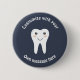 Cartoon lächeln Zahn auf runden Abzeichen, um mit Ihrem eigenen Text.