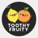 Toothy Fruity Funny Fruit Pun Dark BG Runder Aufkleber