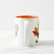This mug features the Topaz Mist Figaro. The story that this Figaro color represents “autumn” is reflected in the design, with autumn leaves in the background.