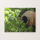 Foto aus einem lokalen Garten, der Töpferwaren zeigt, um den Garten in ein Puzzle zu betonen.