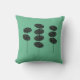 Moderner Holzschnitt mit drei Topiärbäumen auf einem grünen Kissen.