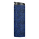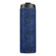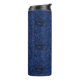 Dive into the deep, rich tones of this Midnight Sapphire Swirl thermal tumbler. Featuring an intricate, topographical-inspired pattern of flowing black lines over a vibrant royal blue base, this design mimics the look of swirling dark water or abstract marble. The high-contrast, symmetrical print offers a sophisticated and artistic alternative to standard solid designs.