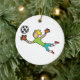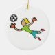 Ein Fußball-Torhüter springt in voller Länge vom Boden ab, um zu verhindern, dass die Angreifer ein Ziel schießen. Ziegelgrafik für Fußballfans und Torhüter.