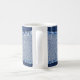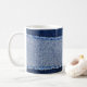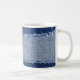 Torn denim: blauer Jeans Stoff. Kaffeetasse