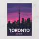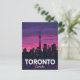 Capture the dazzling nightlife and iconic architecture of Toronto, Canada, with this stunning postcard. It features the famous Toronto City Tower dominating the downtown skyline silhouette against a vibrant pink and purple sunset. Designed in a cool retro travel poster style, this postcard is perfect for sending greetings, keeping as a memento, or framing as a piece of wall art. Ideal for Canadians, travelers, and city enthusiasts who love modern landmarks and bold, colorful designs. The image showcases the beautiful waterfront and city views from Lake Ontario.