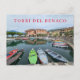 Ein schöner Ausblick auf den kleinen Hafen von Torri del Benaco am Gardasee in Italien auf einer Postkarte gedruckt.