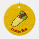 Cartoon Illustration der Tortilla Sandwich-Wrap. Junk Food Kontur Icons Gelbe Muster Hintergrund. Benutzerdefinierter Text auf beiden Seiten.