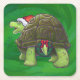 Tortoise in der Weihnachtsmannmütze auf grün Rechteckiger Pappuntersetzer