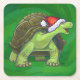 Tortoise in der Weihnachtsmannmütze auf grün Rechteckiger Pappuntersetzer