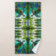 Serviette de bain Set Monogrammed Blue Beach Life Tortue de mer dans l'océan à Faux Stainglass Design. Monogramme avec nom, vert, bleu et noir de la vie de plage moderne tortue de mer dans l'océan