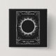 Ein stilvoller Knopf für die totale Sonnenfinsternis vom 8. April 2024. In einem trendigen Tarot-Kartendesign mit der Karte "The Eclipse" und dem Datum in römischen Zahlen. Mit einer mystischen Grafik der Finsternis auf einem weichen schwarzen Hintergrund. Ein schönes Himmelsdesign und ein tolles Souvenir für dieses besondere Ereignis.