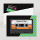 Ein UAWG mit einem fröhlichen, bunten Design aus einem Mixtape, karierten Rahmen, Text und Banner vorne und einem rosa Herz und Text auf der Rückseite. Diese Karte wird Ihre 80-er Themenhochzeit schön ergänzen. Fügen Sie Ihre Namen und Hochzeitsdetails hinzu.