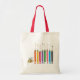 Un sac fourre-tout à amusement pour encourager les artistes de bourgeonnement avec les crayons colorés chacun avec une ligne tirée et une petite image à la fin de elle et d'un jaune mignon gaffent l'abeille avec le texte qui lit la "abeille créative".