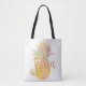 Sac fourre-tout d'été avec un pastel aqua bleu rose chaud magenta et jaune vif ananas avec un script aloha de parties scintillant en faux or