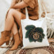 Tote Bag Aquarelle Rose Faux Or Et Vert Monogramme
