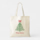 Sac fourre-tout moderne de Noël avec un doodle simple et mignon d'un sapin de Noël avec un arc avec le message de bienvenue modifiable "Joyeux Noël".