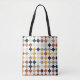 Cette image affiche un motif en diamant coloré et répétitif avec des couleurs alternées (violet profond, magenta, orange, jaune et vert olive), dressé contre un arrière - plan blanc. Les diamants sont disposés en diagonale, en forme de grille, ce qui crée un visuel saisissant qui rappelle l'arlequin classique ou les motifs textiles vintages