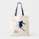 Quiconque aime skier ou passer des vacances à Aspen, Colorado, appréciera ce sac. Il présente un skieur de neige silhouette bleu avec des traces de neige blanche autour de lui. En bas se trouve le texte personnalisé en rouge et bleu que vous pouvez facilement. *L'image clipart utilisée dans cette conception est protégée par le droit d'auteur de Encore Software, Inc., qui permet son utilisation à ses concédants de licence. Tous droits réservés.