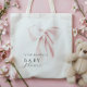 Ajoutez une touche d'élégance et de douceur à votre fête de baby shower avec ce sac fourre-tout chic avec un arc rose délicat et un monogramme initial de script personnalisé. Le design doux et féminin en fait l'accessoire parfait pour les mamans ou les invités, ajoutant un accent mignon et élégant à l'événement. Customisez-le avec une initiale pour une touche personnelle unique qui complète la journée spéciale. Que ce soit pour les fêtes, les cadeaux ou les cadeaux, ce sac fourre-tout est le mélange parfait du charme moderne et du chic baby shower.