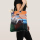 Sac fourre-tout coloré imprimé de chaque côté avec l'image d'un bateau de pêche grec. Le bateau est orange et bleu, et a le Mal Eye symbolique peint sur le côté. J'ai pris cette photo pendant mes vacances en Grèce.