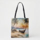 Vue d’Imaginaire d’un rêve que j’ai eu pendant des années d’un petit bateau sur une plage de palmiers.