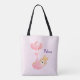 Un sac fourre-tout avec une adorable illustration. Un petit lapin portant une petite couronne dorée. Porté par des ballons dans une couverture de coeur rose.