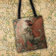 Ce magnifique sac fourre-tout de style Art Nouveau a l'image d'une fée ailée, rappelant l'art d'Alphonse Mucha. Les couleurs tamisées et les lignes fluides du design sont un style reconnaissable dans les images Art Nouveau.
