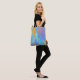 Brosse acrylique peinte en gros traits en bleu, turquoise, jaune et orange.