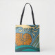 Tote Bag Blue Ocean Waves Nautilus Seashell Motif Nouveau