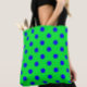 Tote Bag Blue On Green Polka Dots Pattern Design