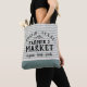 Sac fourre-tout agricole moderne rayé du marché de fermier personnalisé avec votre ville, nom de famille ou autre texte personnalisé. Veuillez noter que la texture de lin subtile fait partie du design imprimé et que le produit n'est pas fait de tissu de lin réel. Cliquez sur le bouton Customiser pour ajouter votre propre texte et créer votre propre design unique d'un genre !