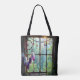 A rustic window with a purple feathered dreamcatcher hanging in the window along with colorful sparkly crystals. The window overlooks a beautiful array of trees and sunbeams shining through.