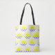 Ce sac fourre-tout a un design Boho de demi-cercles avec des lignes pour faire un soleil et des coquilles Saint-Jacques pour faire de l'eau.