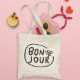 Bonnjour Simple Moderne Floral Sacs fourre-tout de salutation française offre un design moderne simple avec le texte "Bonjour" dans la typographie de script moderne. Créé par Evco Studio www.zazzle.com/store/evcostudio