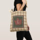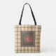 Tote Bag Brown Plaid Motif Automne Maple Leaf Monogramme